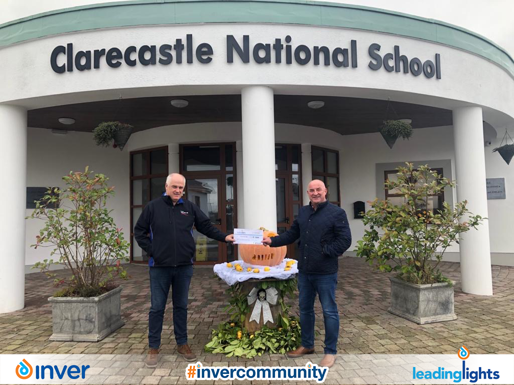 Clarecastle National School recieve €1,000 donation from Inver O’Keeffes Gala Ennis for their 2020 Leading Lights.