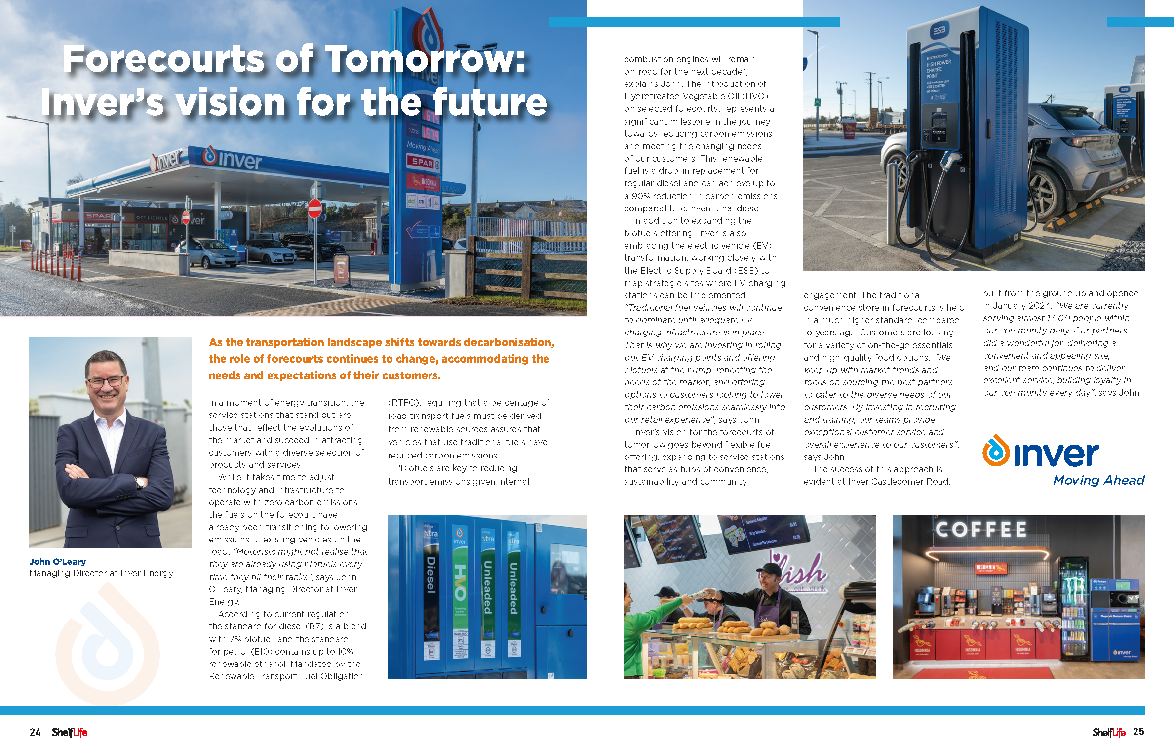 Inver was featured in ShelfLife Sourcebook, where Managing Director John O’Leary discusses our strategic approach to the future of forecourts. The interview highlights our focus on sustainability, innovation, and meeting the evolving needs of our customers during this critical energy transition.