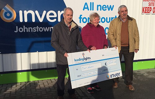 Dick Daly from Inver Johnstown was delighted to nominate the local community hall – St. Kieran’s hall as a worthy recipient of Inver’s Leading Lights sponsorship. Kieran Murphy accepted the cheque on behalf of the hall’s committee.